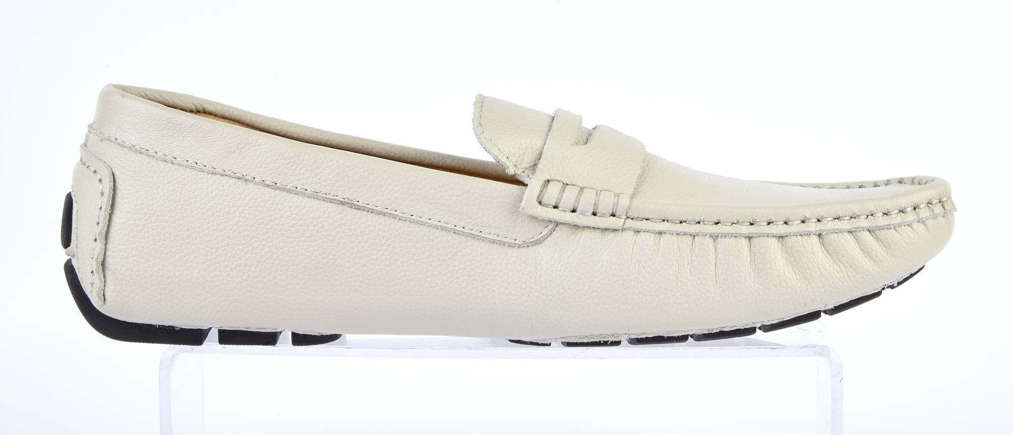 Our ecru leather loafers, made with the finest quality, soft leather upper, leather lining throughout, and flexible rubber sole. They are the ideal shoe for both smart and casual wear, and the slip on/off design makes them easy to wear. They are a standard G width fitting but are slightly wider rather than narrow which makes for comfortable wear. They are lightweight and durable too.