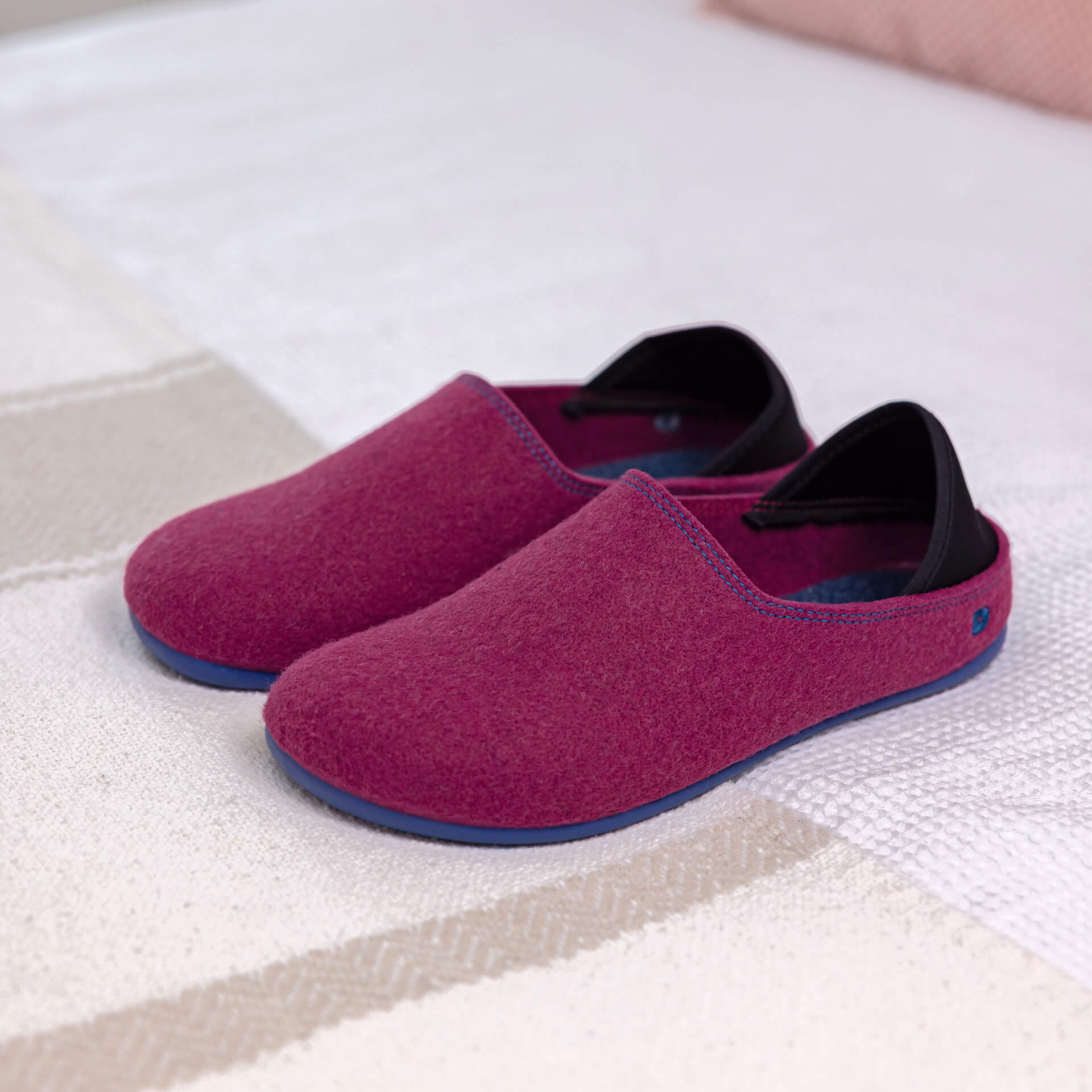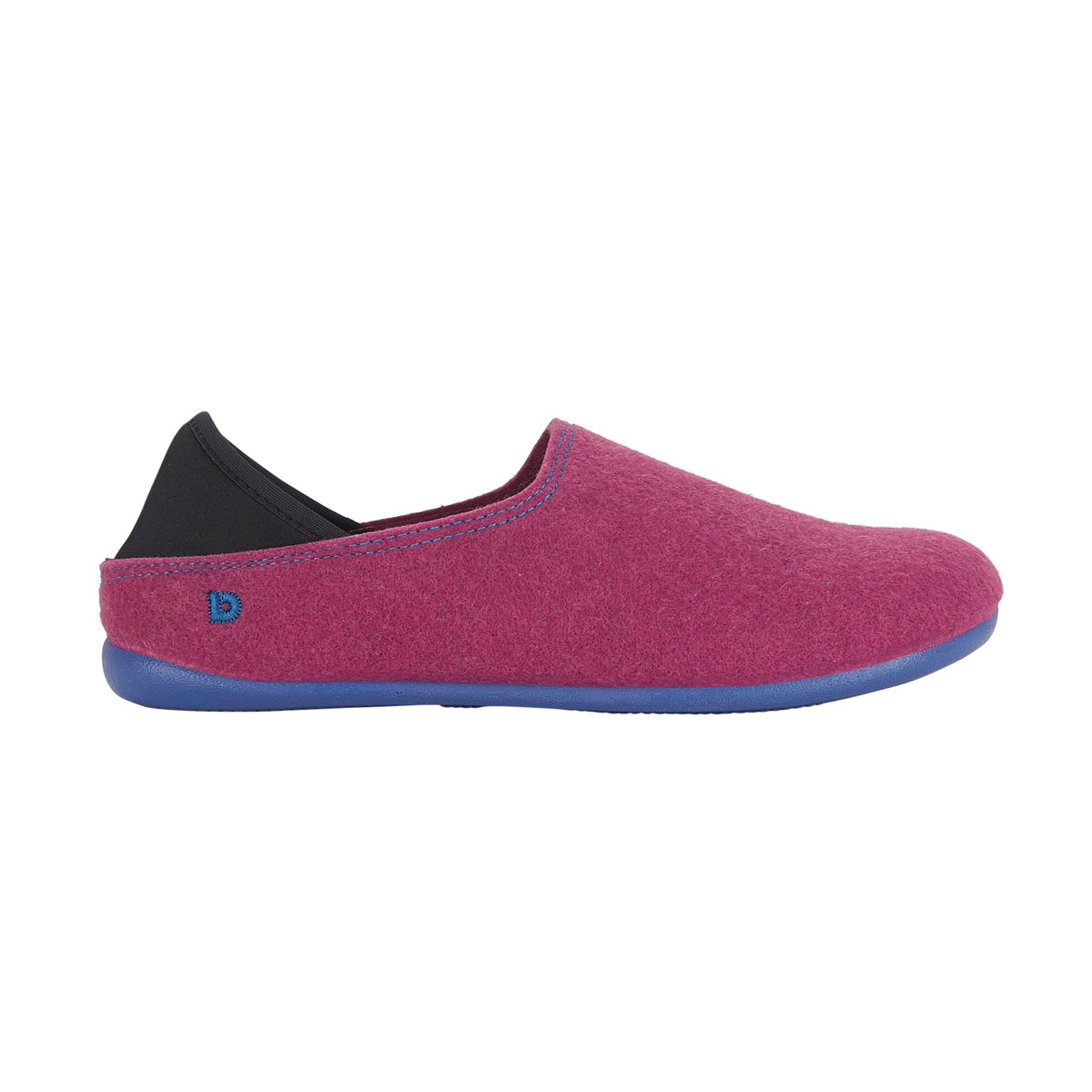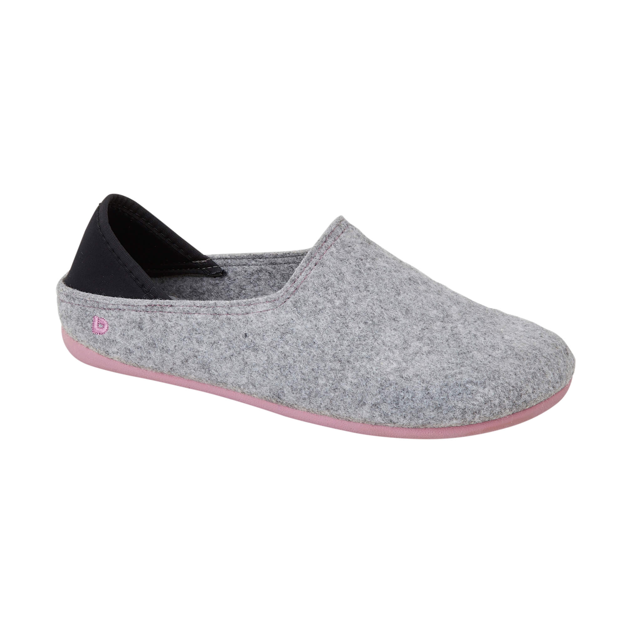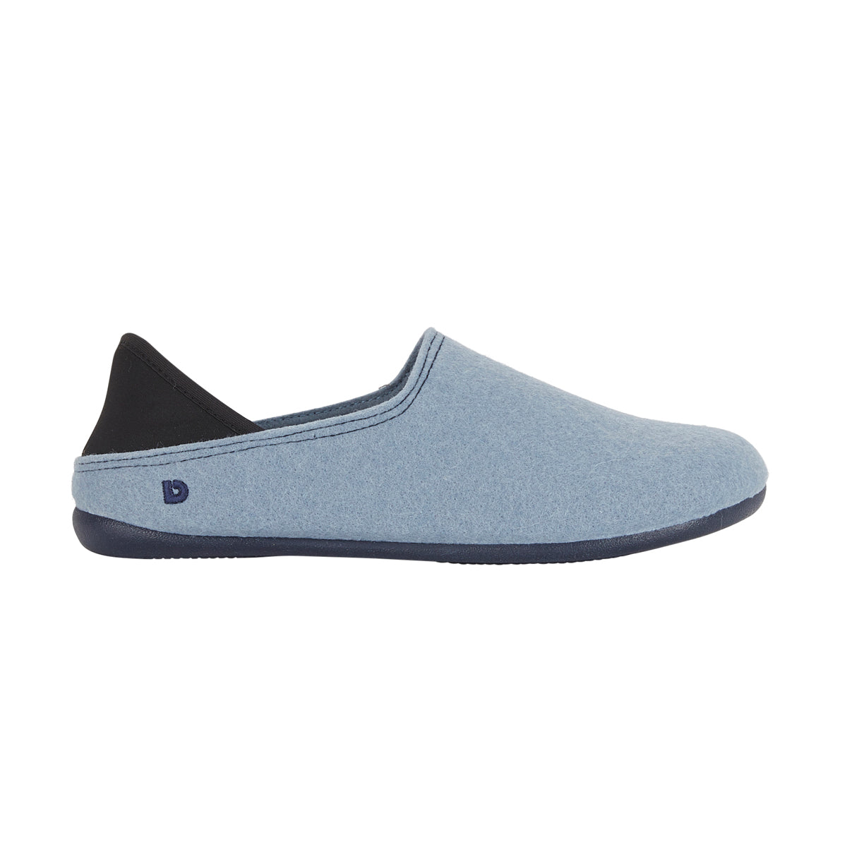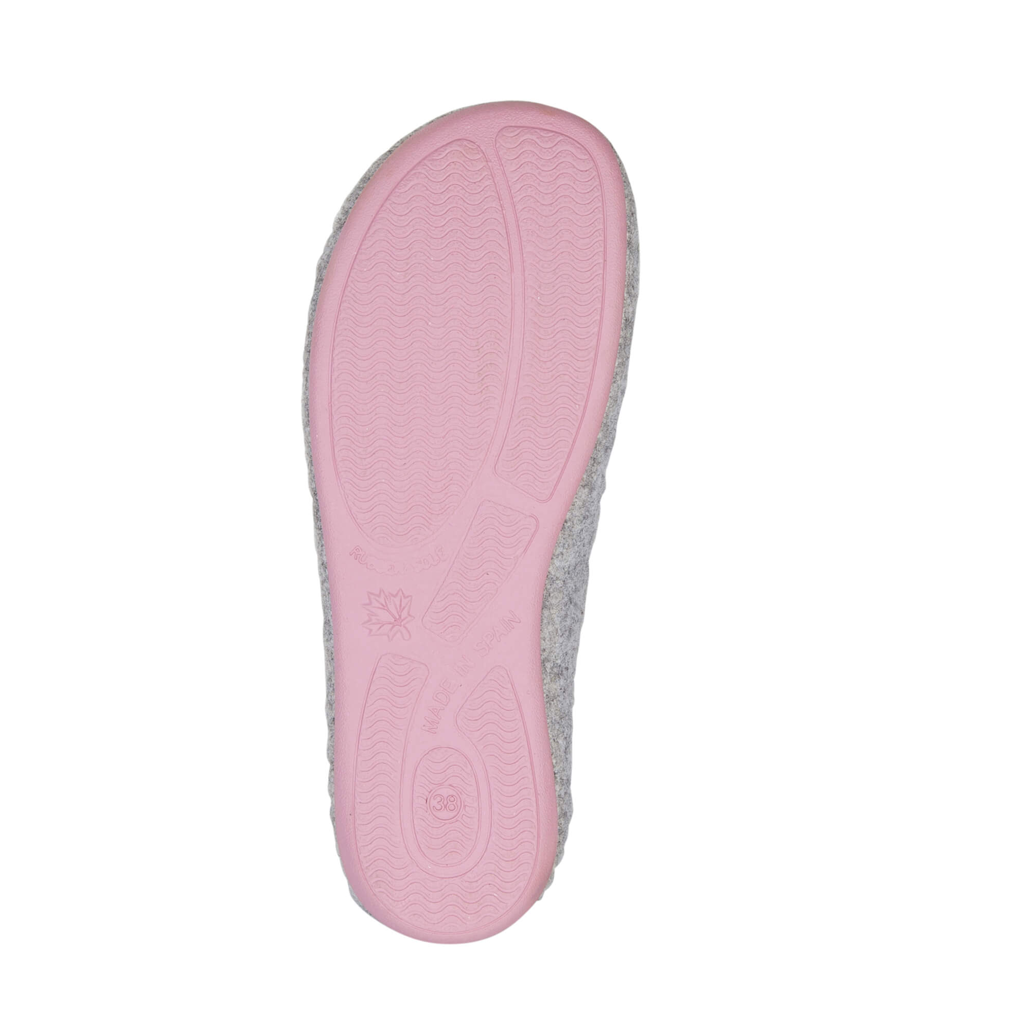 Our eco felt slipper for women. With a felt upper made from 100% recycled materials, 20% of which is plastic collected from the sea (PET). It has a flexible rubber sole. Designed in the United Kingdom, made in Spain.