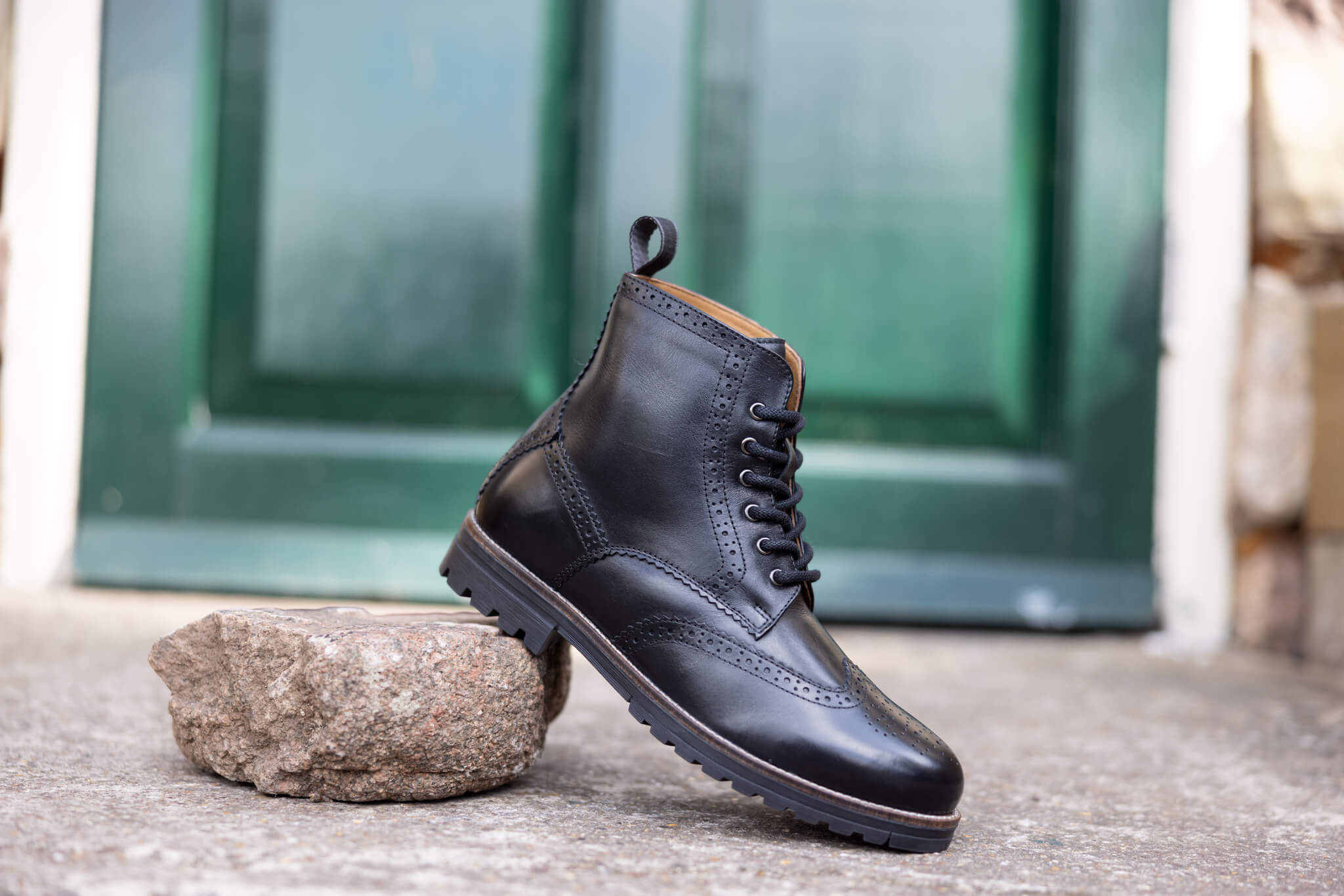 Our NEW high grade men's sheepskin lined boot. With a traditional brogue leather upper, our signature premium sheepskin lining throughout, including the insole, and a hard wearing non slip rubber sole. This is a seriously luxurious winter boot.