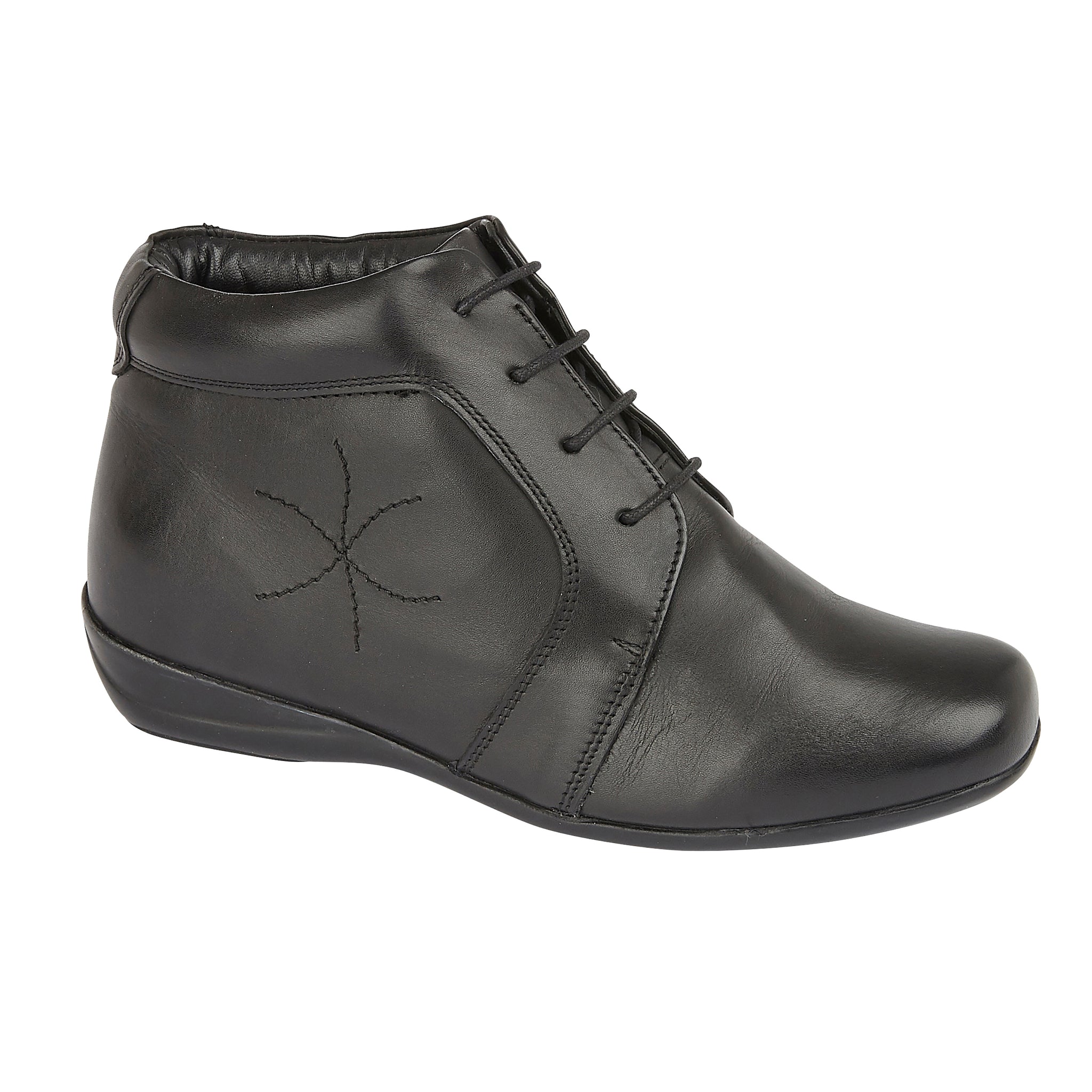 Our lace up ankle boot. Made with a soft leather upper, leather insole and hard wearing sole. The leather upper is waterproof. E fitting (wide).
