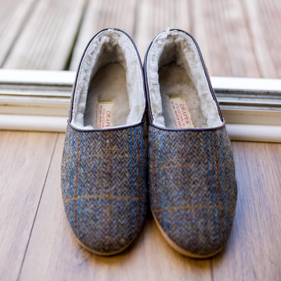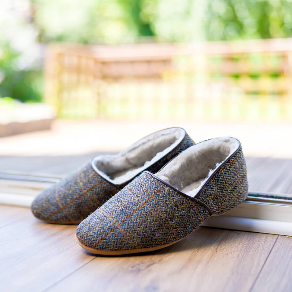 Lewis Men’s Harris Tweed Sheepskin Slippers — Handmade in our factory in Glastonbury, England