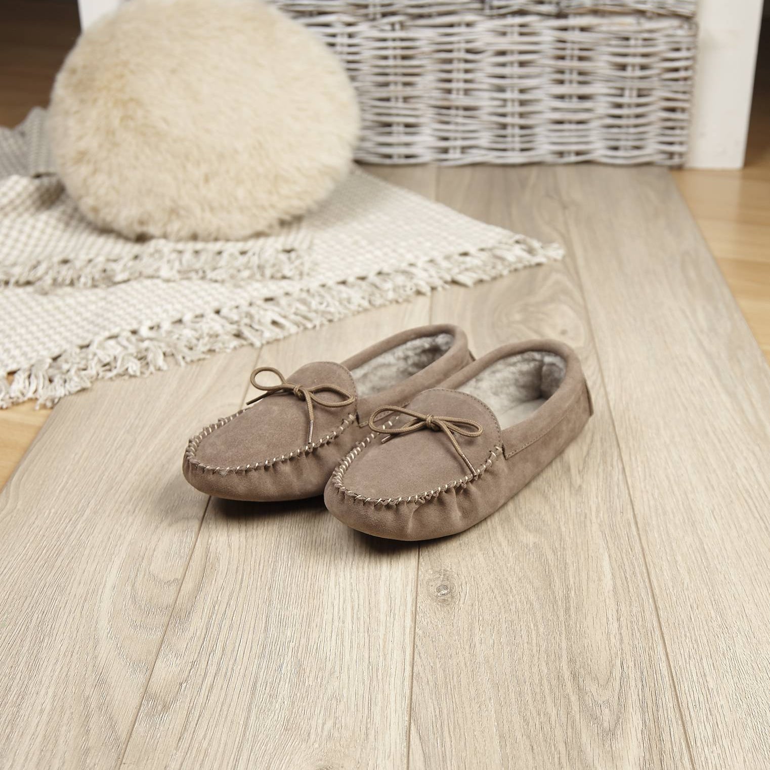 Our classic soft sole moccasins. These sheepskin moccasins are the ultimate in comfort and traditional style. These sheepskin moccasins have the finest quality sheepskin lining and silky suede upper. Hard wear and comfort are the features of these high-quality leather moccasins. Made in England.
