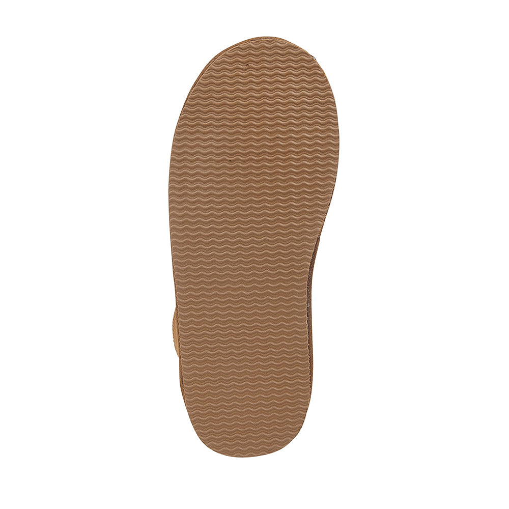 Our new modern women's bootie sheepskin slipper. Made with a premium double faced sheepskin upper and durable and flexible rubber sole for both indoor and outdoor use.